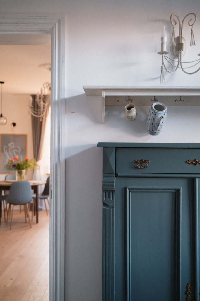 Wnętrze urządzone w naturalnym stylu z zachowaniem starego pieca kaflowego. Taras wychodzi na stronę ogrodu- idealne miejsce na poranne śniadanie wśród śpiewu ptaków.