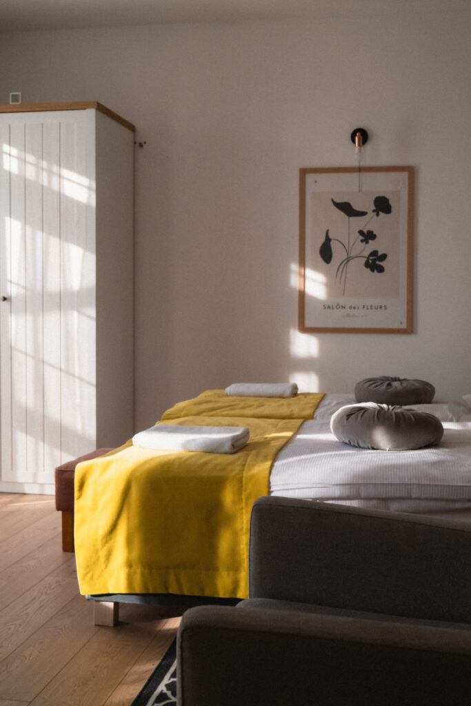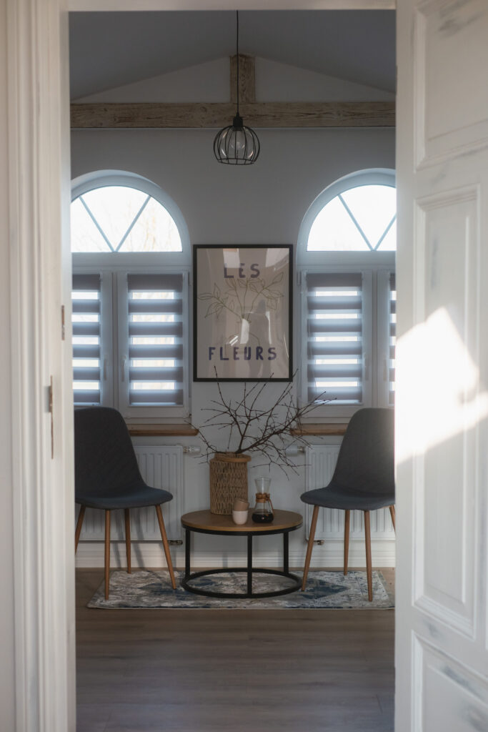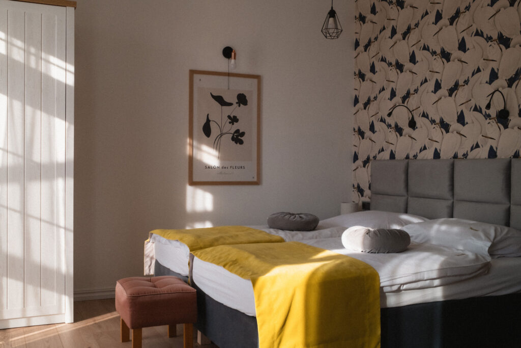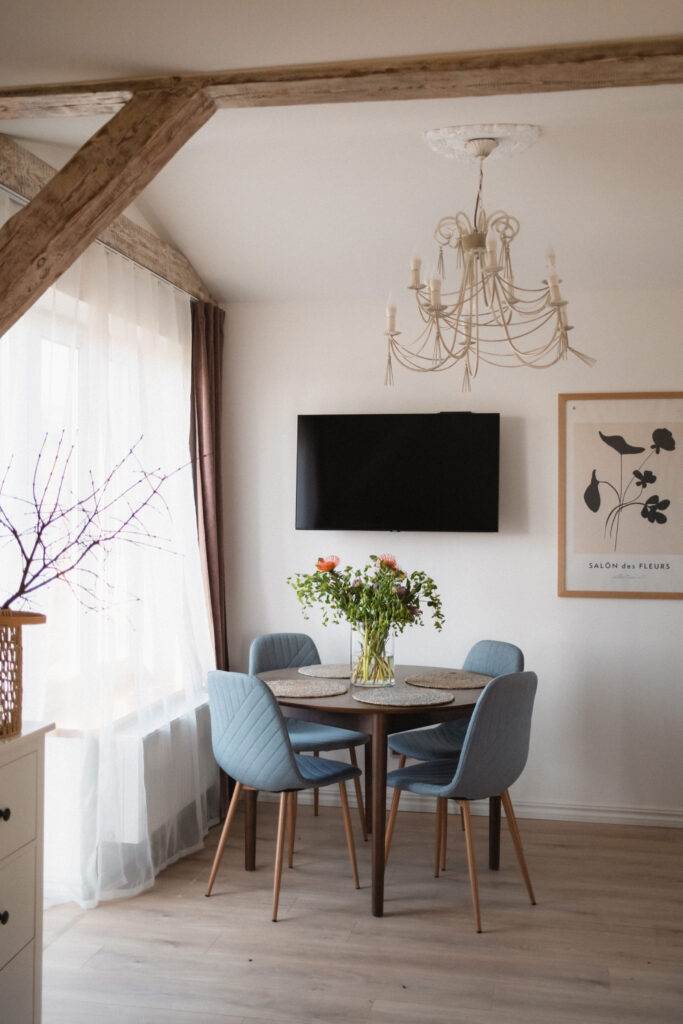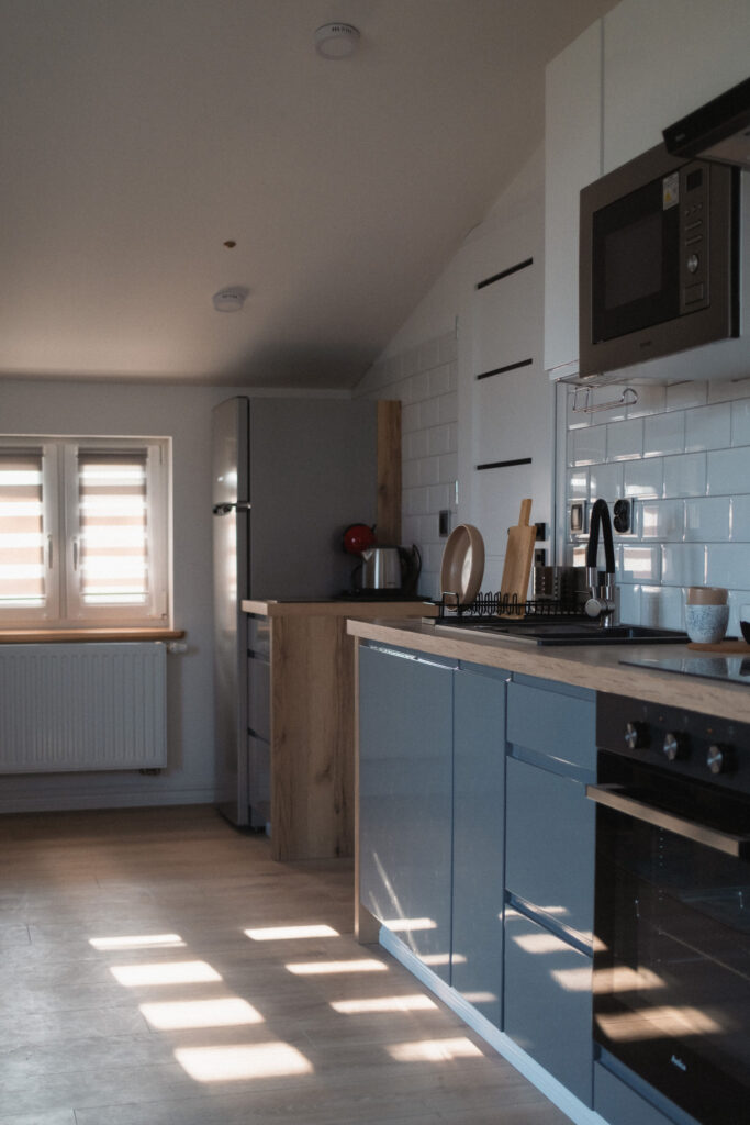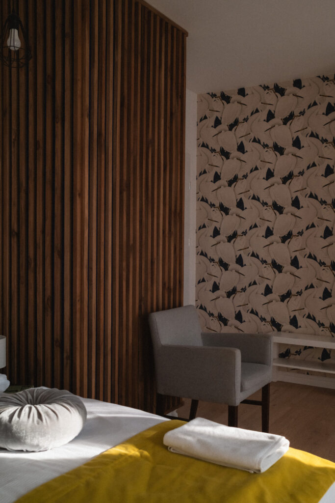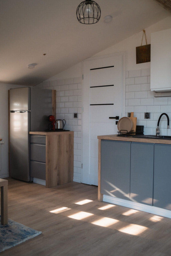 Nasze apartamenty powstały z myślą o tych, którzy szukają spokoju i prawdziwego odpoczynku. Każdy z nich jest inny, ale łączy je prostota, przytulność i bliskość natury. Drewniane detale, miękkie światło i naturalne materiały tworzą atmosferę, w której łatwo się wyciszyć. Z okien widać ogród, sad i pola. W środku czekają wygodne łóżka, komfortowe aneksy kuchenne i łazienki, wszystko czego potrzeba, by poczuć się swobodnie. To miejsce stworzone do tego, by zatrzymać się na chwilę i po prostu być.